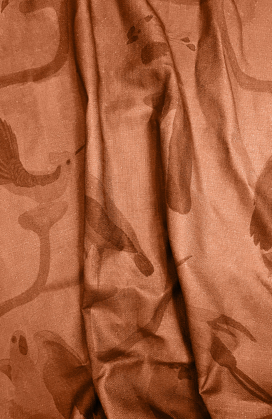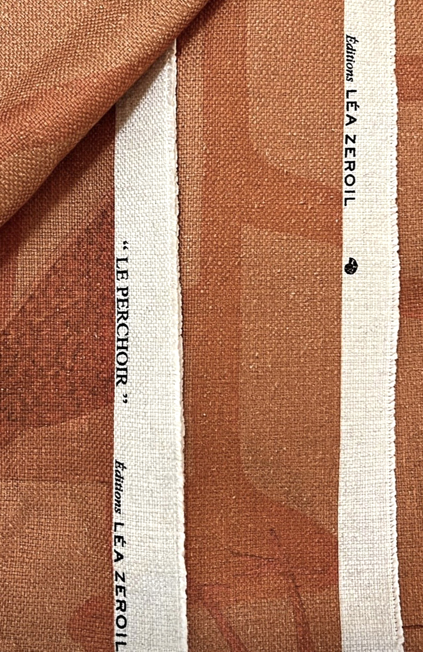 Création et développement du tissu « Le Perchoir » édité par Léa Zeroil. Dessin peint à l’aquarelle, coloration et choix du support en collaboration avec la designeuse. Grand raccord sauté, imprimé en Italie sur natté viscose/lin.